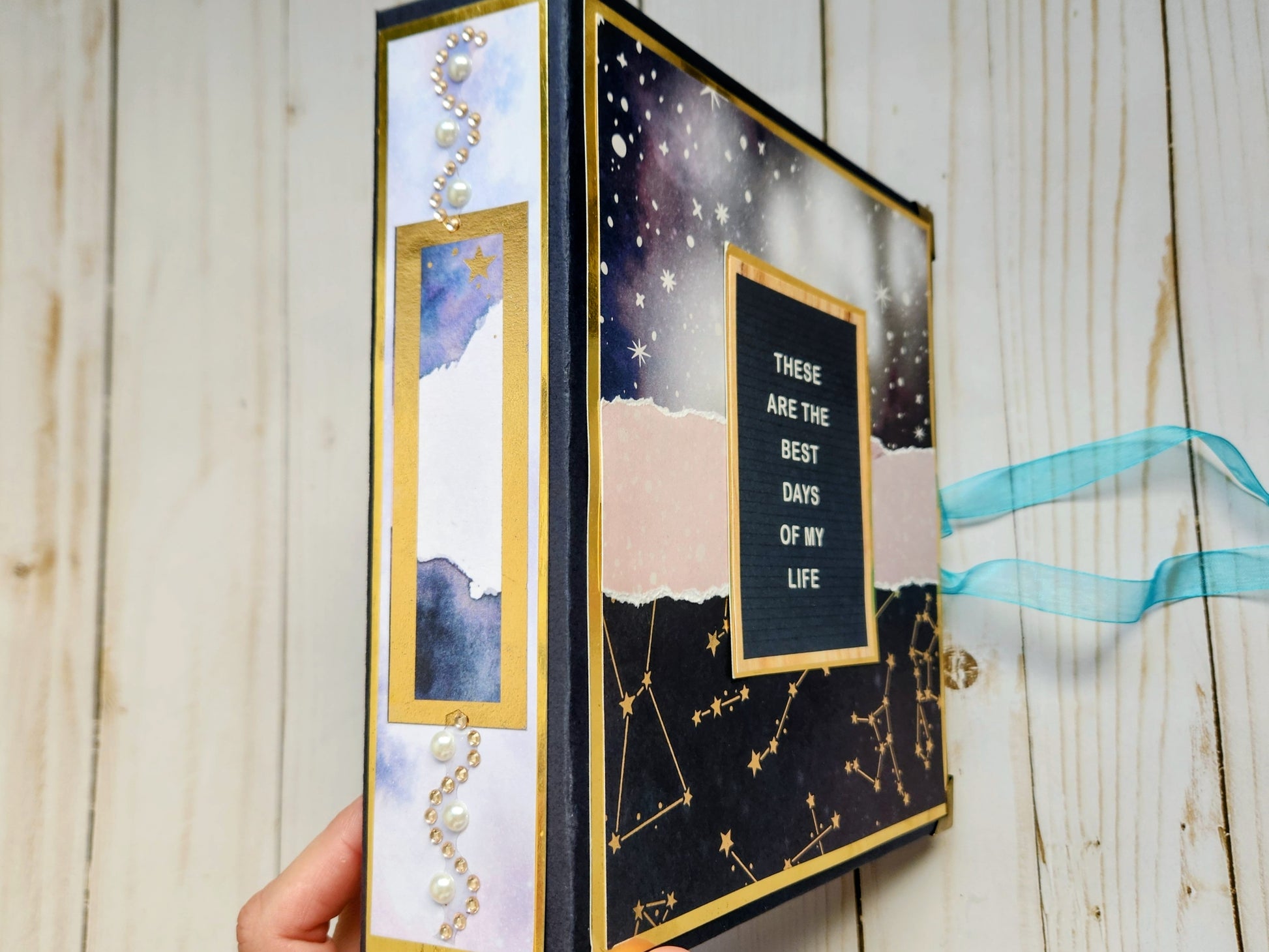 Álbum de fotos artesanal diseñado como regalo único y personalizado. Cada página ha sido cuidadosamente elaborada a mano, combinando técnicas tradicionales que transforman tus recuerdos en una obra de arte. Perfecto para conservar momentos especiales con un toque de elegancia cósmica. Un obsequio memorable que refleja dedicación y buen gusto.