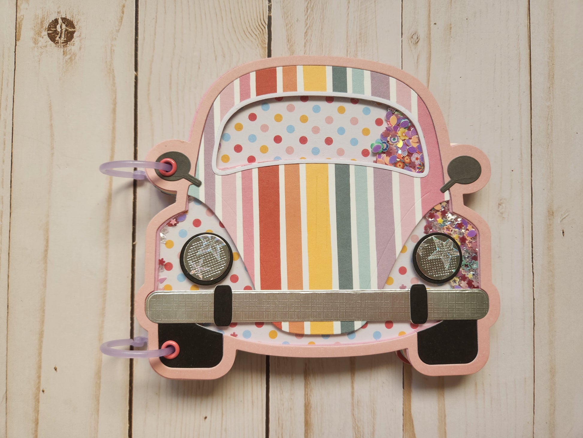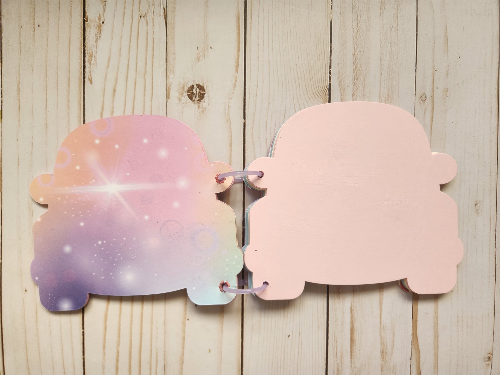 Libreta forma coche arco iris