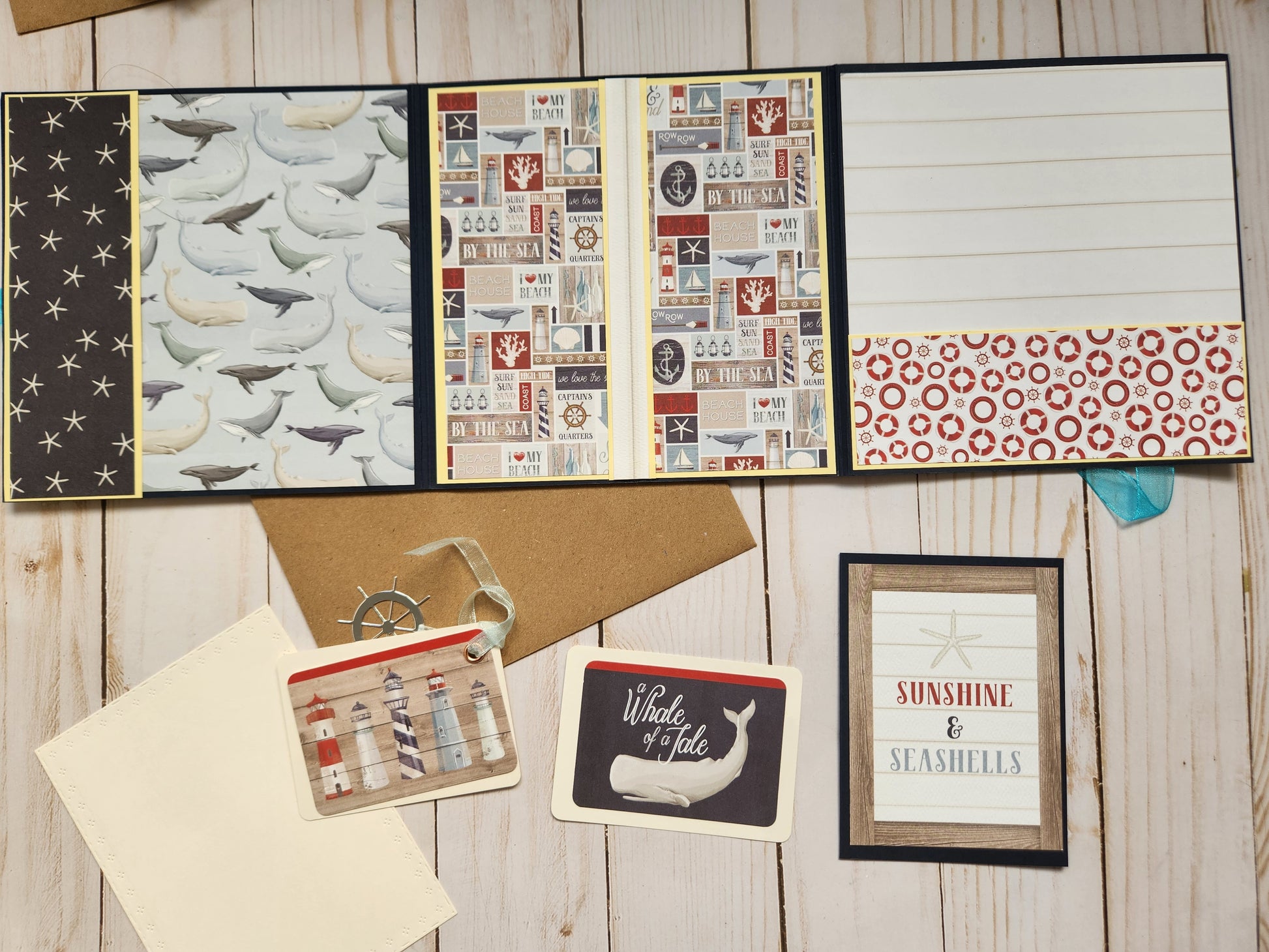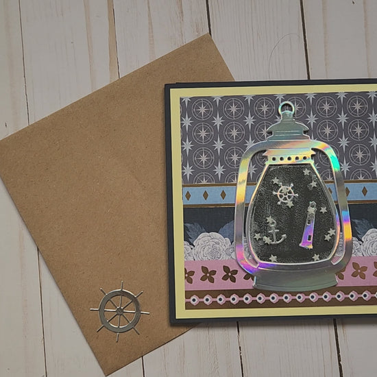 Tarjeta artesanal en formato tríptico que despliega una composición temática náutica con detalle minucioso. Cada pliegue revela elementos marinos cuidadosamente ilustrados, desde farolillos costeros hasta motivos de navegación tradicional. Elaborada manualmente, garantiza singularidad en cada ejemplar. Ideal como obsequio diferenciado para amantes del mar, viajeros o coleccionistas de papelería exclusiva. Presentación sofisticada que combina funcionalidad con valor artístico, perfecta para ocasiones especiales donde se busca autenticidad y originalidad.